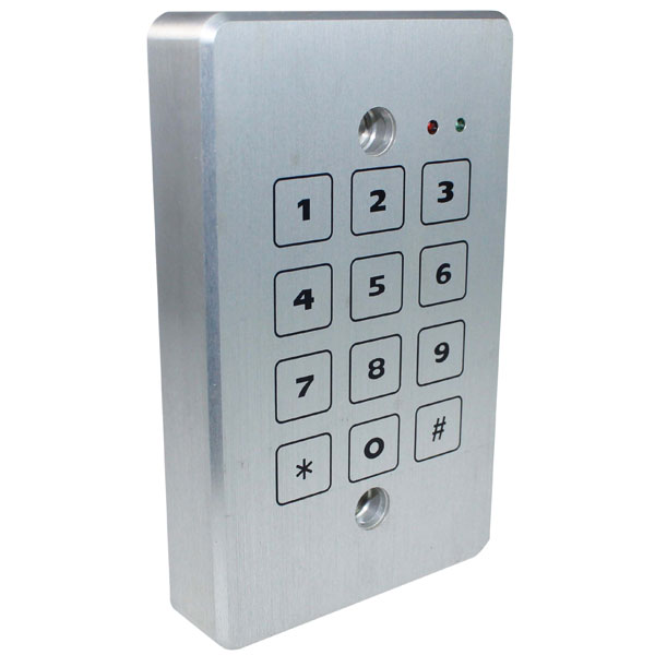 CamdenBoss CPS-ST-ALN natural aluminium entry keypad is a single door, stand alone, self contained access control keypad using piezo technology. It has a rugged, one piece construction with integrated control electronics for managing access codes and door settings. The integrated LEDs and buzzer provide visible and audible feedback.The keypad will hold up to 200 user codes from 100 million combinations using 4 to 8 digits.