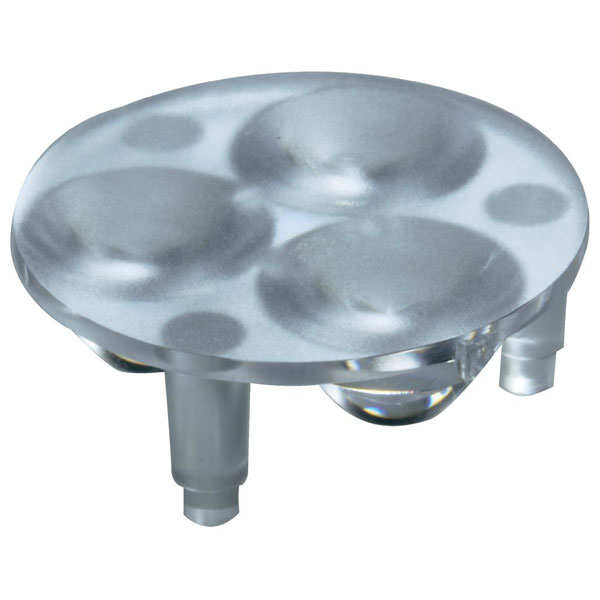 This lens unit is designed for 3 x Ø10mm LED arrays. The optic has a medium spot beam angle and a frosted lens.