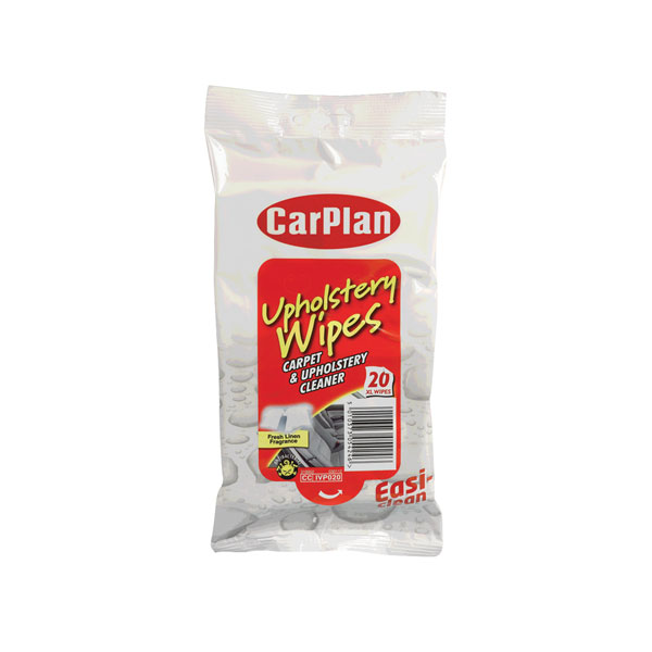 CarPlan Upholstery Wipes have been specially developed to clean everyday stains, dirt and grime from car upholstery and carpets. The odour eliminating formulation also removes lingering odours that can become trapped in fibres. Suitable for car upholstery and carpets. They have a fresh linen fragrance.