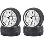 Carson 1:10 Buggy Wheels Chrome Rims and On-Road Tyres Set of 4