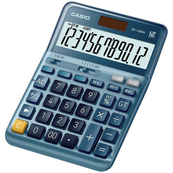 Casio DF-120EM2350239, 04549526609947, is a versatile desk calculator equipped with a large display and dual power functionality, featuring both solar and battery operation. Designed in a portable format, the DF-120EM is suitable for use in various settings such as classrooms, offices, and fieldwork environments where quick and efficient calculations are essential. The calculator's robust build and straightforward interface make it an ideal choice for engineers requiring a reliable tool for handling everyday numerical computations, financial analyses and data-related tasks where precision and ease of use are paramount.