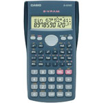 The Casio FX-82 MS is a scientific calculator with a total of 240 functions and a two-line display. The top line has a 12-character dot matrix display while the bottom line has an LCD 10 + 2 character display.
