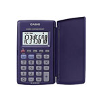 The Casio HL-820VER is a compact pocket calculator with a folding protective cover.