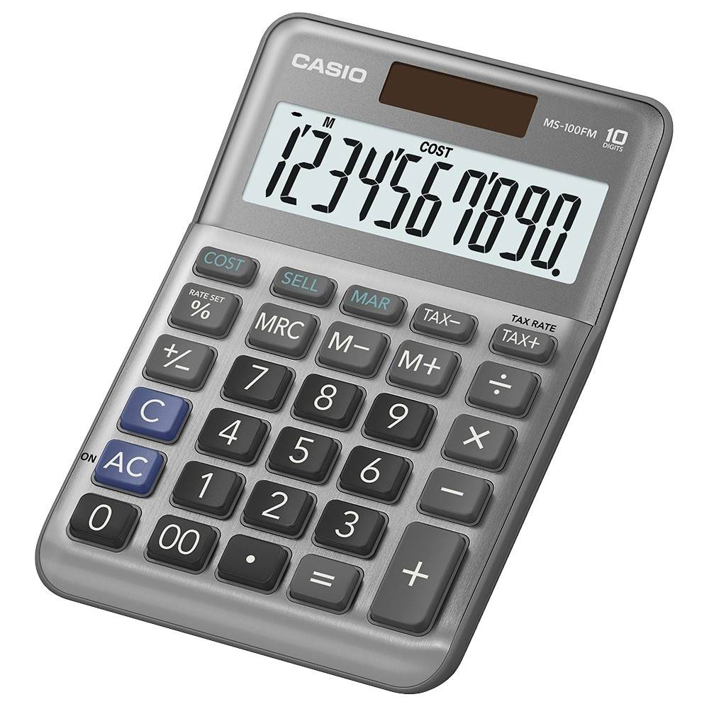 Casio MS-100FM 2758063 Calculator Desktop Silver 10-Digit Solar-Battery Powered
