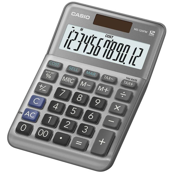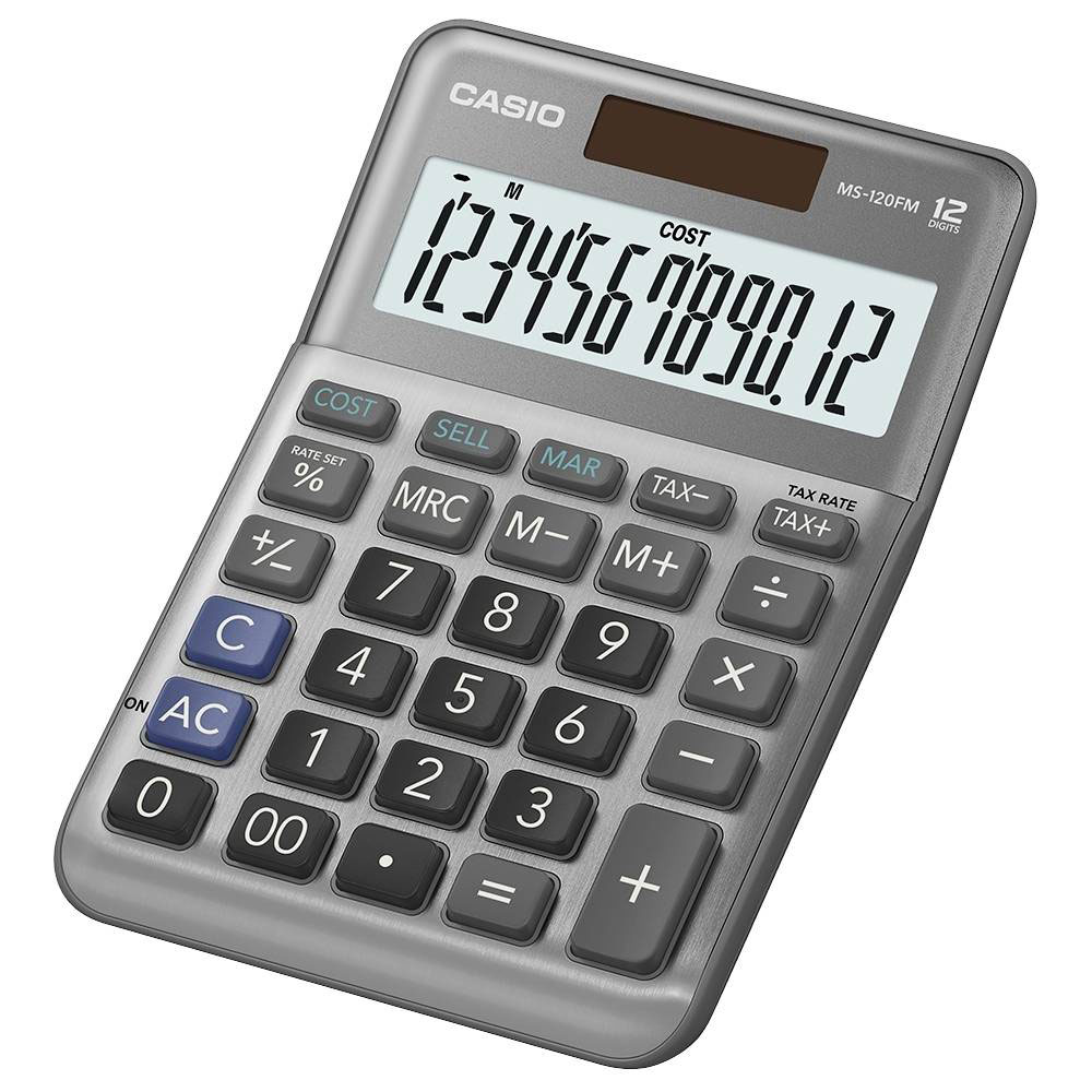 Casio MS-120FM, 2758064, is a 12-digit display calculator. Designed with a robust black plastic casing, this device is engineered to perform efficiently with both solar and battery power, ensuring versatility and reliability. The MS-120FM serves as an ideal tool for calculations in classroom environments, as a desk accessory in office settings, or as a portable solution for fieldwork situations. Its durability makes it suitable for repetitive use in various engineering applications, from performing basic arithmetic to supporting complex financial planning tasks.