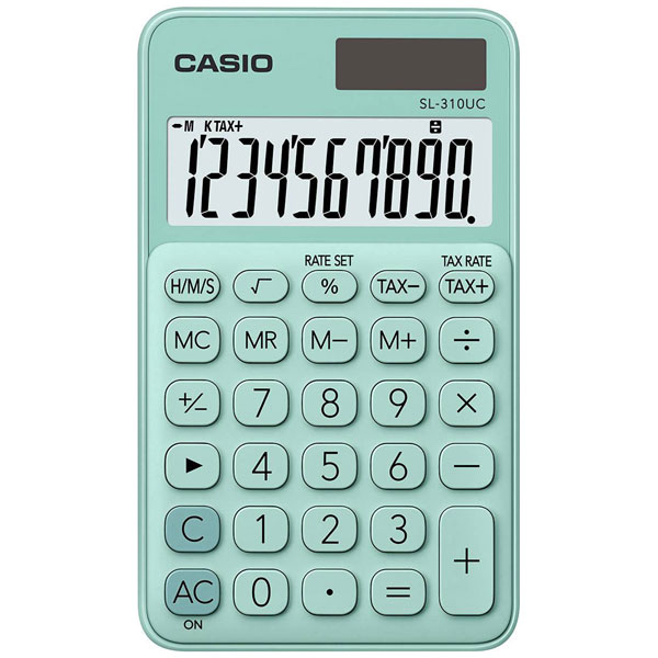 Casio SL-310UC-GN, 2435366, is a versatile green 10-digit pocket calculator ideal for various engineering and academic applications. This calculator features a large display, which is particularly useful for improving readability during detailed calculations, and it is both solar-powered and battery-backed, ensuring reliable operation in diverse lighting conditions. As a portable and lightweight device, the SL-310UC-GN is well-suited for use as a desk calculator in classrooms or for on-the-go calculations in fieldwork scenarios. Its compact design allows it to conveniently fit into pockets or bags, making it an essential tool for engineers and students who require quick and accurate calculations in their daily tasks. The calculator's robust construction and efficient power management make it a practical choice in both professional and educational settings.