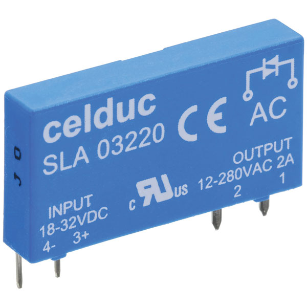 The Celduc SLD03210 is a solid state relay capable of switching a maximum voltage of 60 V, suitable for both AC and DC applications. This semiconductor switch features zero crossing capabilities, allowing for efficient and reliable electronic switching in sensitive circuits. It is typically used in applications requiring low power handling up to 2.5 A, making it ideal for controlling small motors and lighting systems.