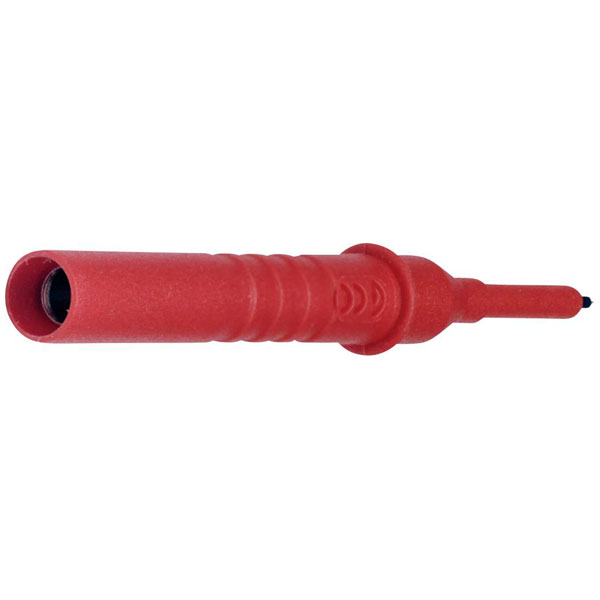 The Chauvin Arnoux P01103059Z test probe is a red, spring-loaded probe contact designed for CAT IV 600 V applications. It is ideal for high-voltage testing and measurement in professional electrical engineering settings. This test lead tip ensures reliable and safe connections during diagnostics and troubleshooting tasks.