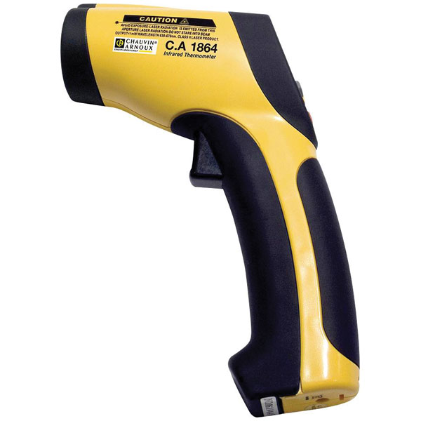 The Chauvin Arnoux C.A 1864 IR thermometer is a non-contact infrared thermometer with a measurement range of -50 to 1000 °C and a 30:1 distance-to-spot ratio. It features a pistol grip for easy handling and precise temperature readings from a safe distance. Ideal for industrial and HVAC applications, this device provides accurate thermal assessments without direct contact.