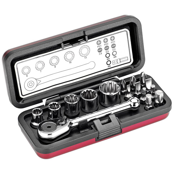 Cimco 113156 Bit Sturdy Aluminium Box Chrome-Vanadium Mini Reversible