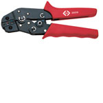 Designed for the safe and secure crimping of green, red or blue insulated terminals. The C.K ratchet crimping pliers feature: Heavy duty body construction with hardened steel jaws - guaranteed for up to 30,000 cycles. Factory set crimp pressures for the optimum connection safety. Full cycle ratchet mechanism for safe, repeatable results and comfortable ergonomic handles.