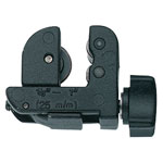 Compact, adjustable pipe cutter manufactured from black lacquered die cast aluminium for strength and corrosion resistance. Replaceable hardened steel cutting wheel for long life performance. Cuts copper, brass aluminium, and thin wall steel pipe from 3 to 25mm diameter.