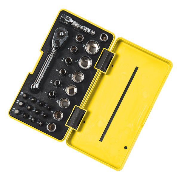 • Includes sockets, adaptor, extension bar, ratchet handle and 25mm bits