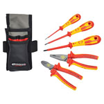 Constructed specifically for the professional Electrician, the C.K Electrician's Core Tool Kit T5951 comprises of the most commonly used electricians tools including the C.K RedLine VDE pliers and premium quality 1000v insulated C.K DextroVDE screwdrivers. The tool kit is supplied together with the convenient C.K Magma Essential Tool Pouch. Contents: C.K Magma Essential Tool Pouch, C.K RedLine VDE Side Cutters 160mm, C.K Redline VDE Combination Pliers 180mm, C.K DextroVDE PZD 2, C.K DextroVDE slotted 2.5mm, C.K DextroVDE slotted 4.0mm.
