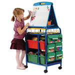 This classroom cruiser with tabletop easel from Cicada is a fantastic introduction into the world of painting, offering a fun way for children to learn about art. Mobile and compact, this unit is ideal for guided reading programs, small group instruction or general classroom storage. Offering a variety of features designed to assist teachers including a detachable table top easel, 2 storage pocket centres, a big book rack and 4 storage tubs.