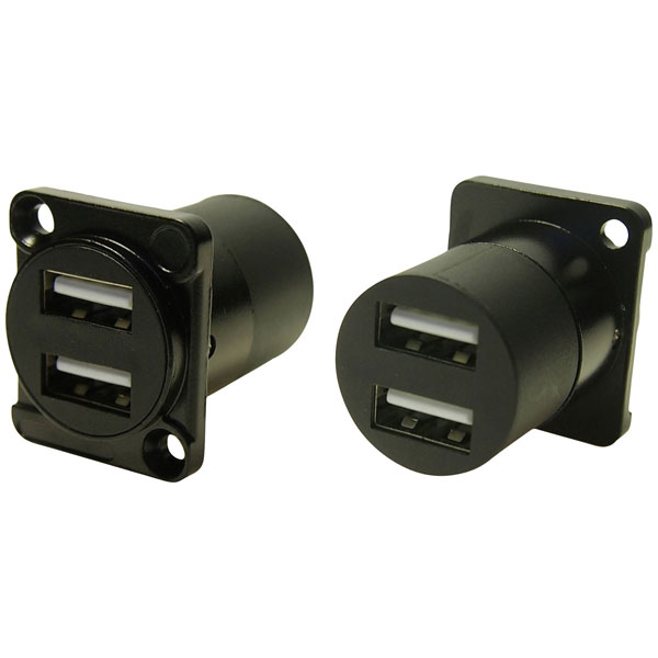 Cliff CP30086 Dual USB 2.0 A-A Adapter Black Metal Finish 1pc