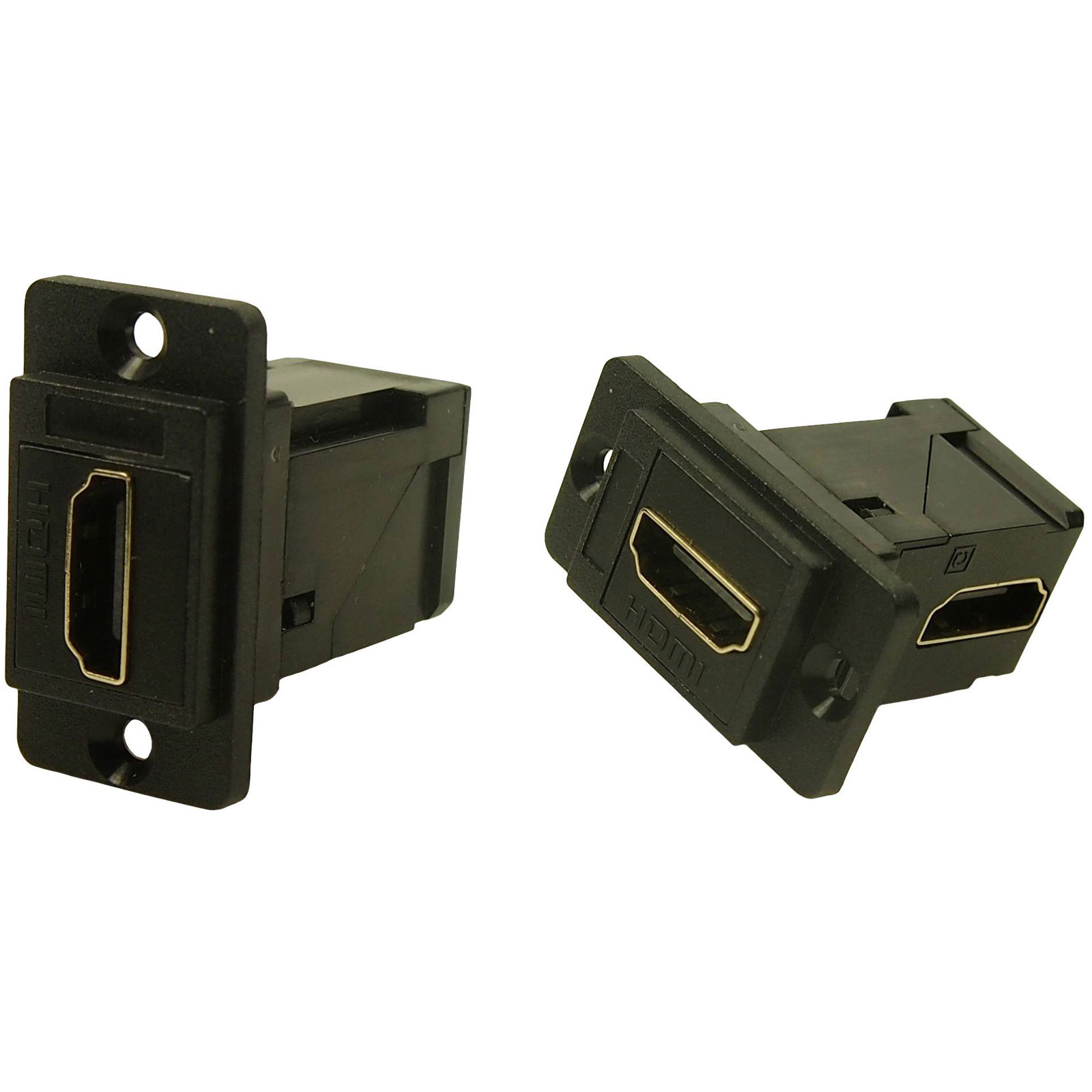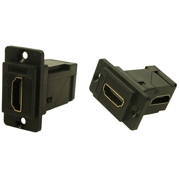 The Cliff CP30753 HDMI adapter has a built-in socket for secure connections. This black adapter is ideal for integrating into audio-visual setups. It is typically used in professional and home entertainment systems.