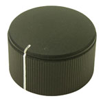 A black anodised aluminium knob for professional equipment with 6mm splined shafts. The knob consists of a machined aluminium shell mounted on a moulded plastic inner for versatility and ease of installation.