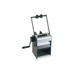 The Cliff PM-1 component preforming machine is designed to cut to length and preform axial lead components ready for fitting into a PC board, where the component is parallel to the board. The components may be fed in bandolier form (assuming a 5mm pitch between components or multiples thereof), or loose by means of the built-in chute slots. Finished components can be collected in a box (not included) placed under the cutter head, or (preferably) in front of the machine using the metal chute under the cutters. All adjustments are carried out on top of the machine using the built-in scales. Setting instructions are printed on the machine. Components are cut and formed without scoring or damaging the leads. Wire links can also be rapidly produced from bandoliered wire. General construction features anodised aluminium body with heavy steel sides.