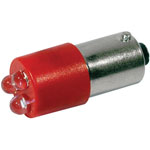 A 24V AC/DC clear white LED lamp with a BA9s base and a half-wave rectifier. Designed for general signalling applications.