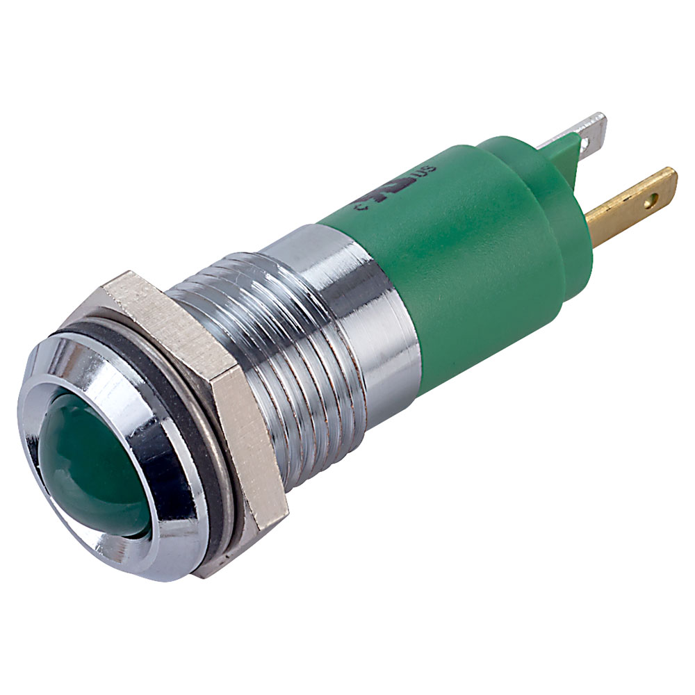 CML 19210351 M14 LED Indicator Green Prominent Satin Chrome Bezel 24VDC
