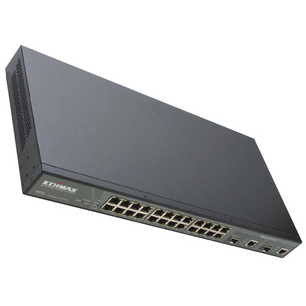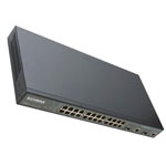 The WEB Smart Switch has 24x fixed auto negotiating ports for 10/100Mbps Ethernet. Two further Dual Media 10/100/1000 Base-T or GBIC/SFP fibre ports provide connection for any speed Ethernet including 1000BASE-T Gigabit.