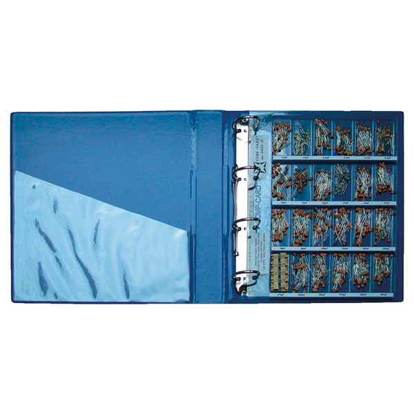 A radial ceramic capacitor kit that contains a total of 500 pieces of commonly-used values from 1pF to 680pF. The capacitors are supplied in a binder in handy transparent wallets.