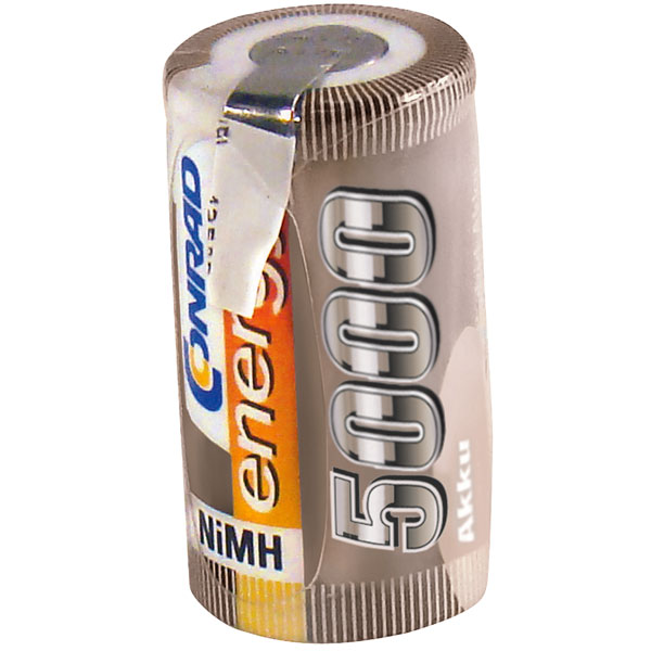 This NiMH battery sub-C-single cell 1.2V from Conrad Energy has a rechargeable battery capacity of 5000mAh and is equipped with solder lugs.