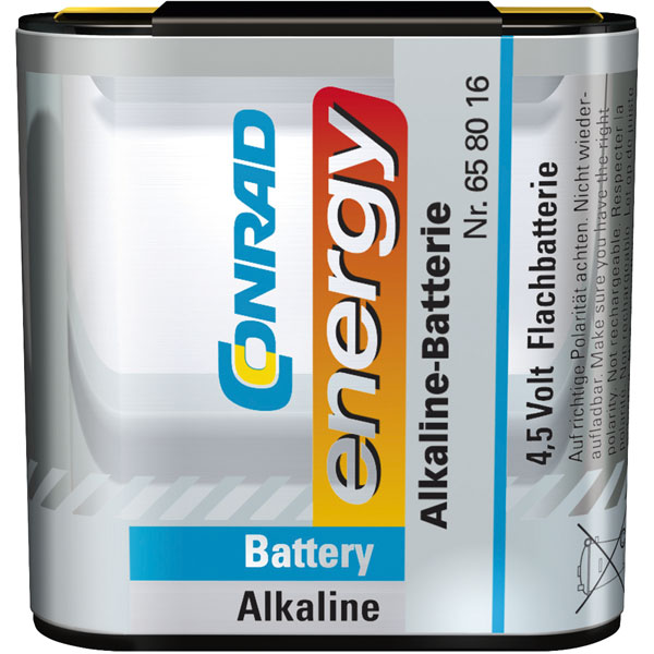 This flat spring contact 4.5V alkaline battery is ideal when you want performance and reliability with the Conrad reputation. It is particularly suited for use in devices with high power consumption and for long life use.