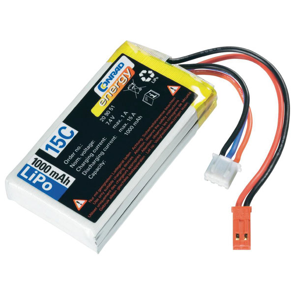 Conrad Energy Lithium Polymer Battery 7.4V/1000mAh (10C) with BEC Connector