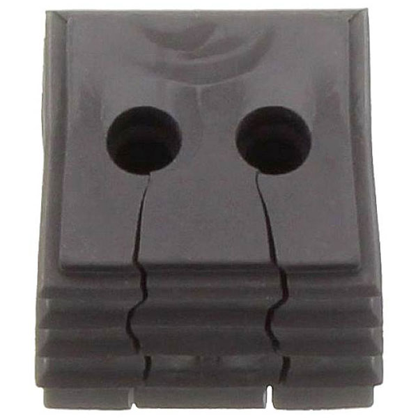 The CONTA-CLIP KDS-DE 2X4-5 BK is a black grommet made from thermoplastic elastomer. It is designed for sealing applications and is part of CONTA-CLIP's 28555.4 series. Typical uses include secure sealing in electrical installations and cable management systems.