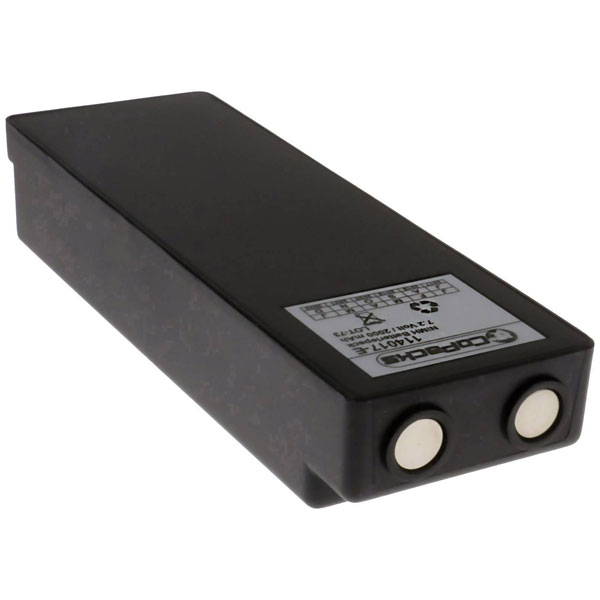Copacks manufactures the RV battery 7.2 V 2000 mAh, which is identified by part number 114017-E. This battery is designed for use in remote control systems, such as crane and hoist controls, providing reliable power for these applications. The Copacks RV battery is typically sold as a single unit per package.