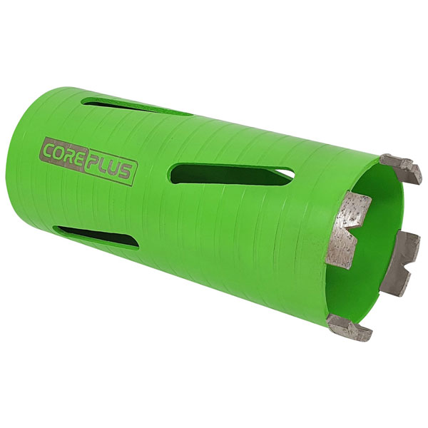 The CorePlus Diamond Dry Core Drill Bit, with 8mm diamond segments deliver a high concentration of premium-grade diamond in the bond.