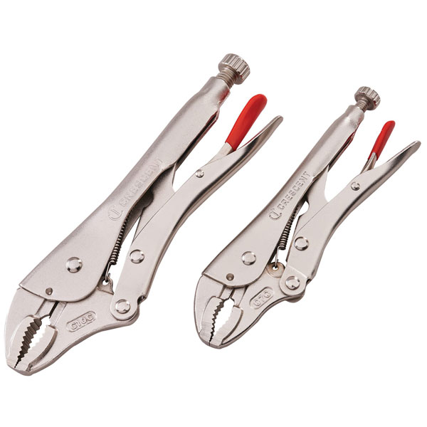 Crescent CLP2SETN-08 features a set of two curved jaw locking pliers with integrated wire cutters.