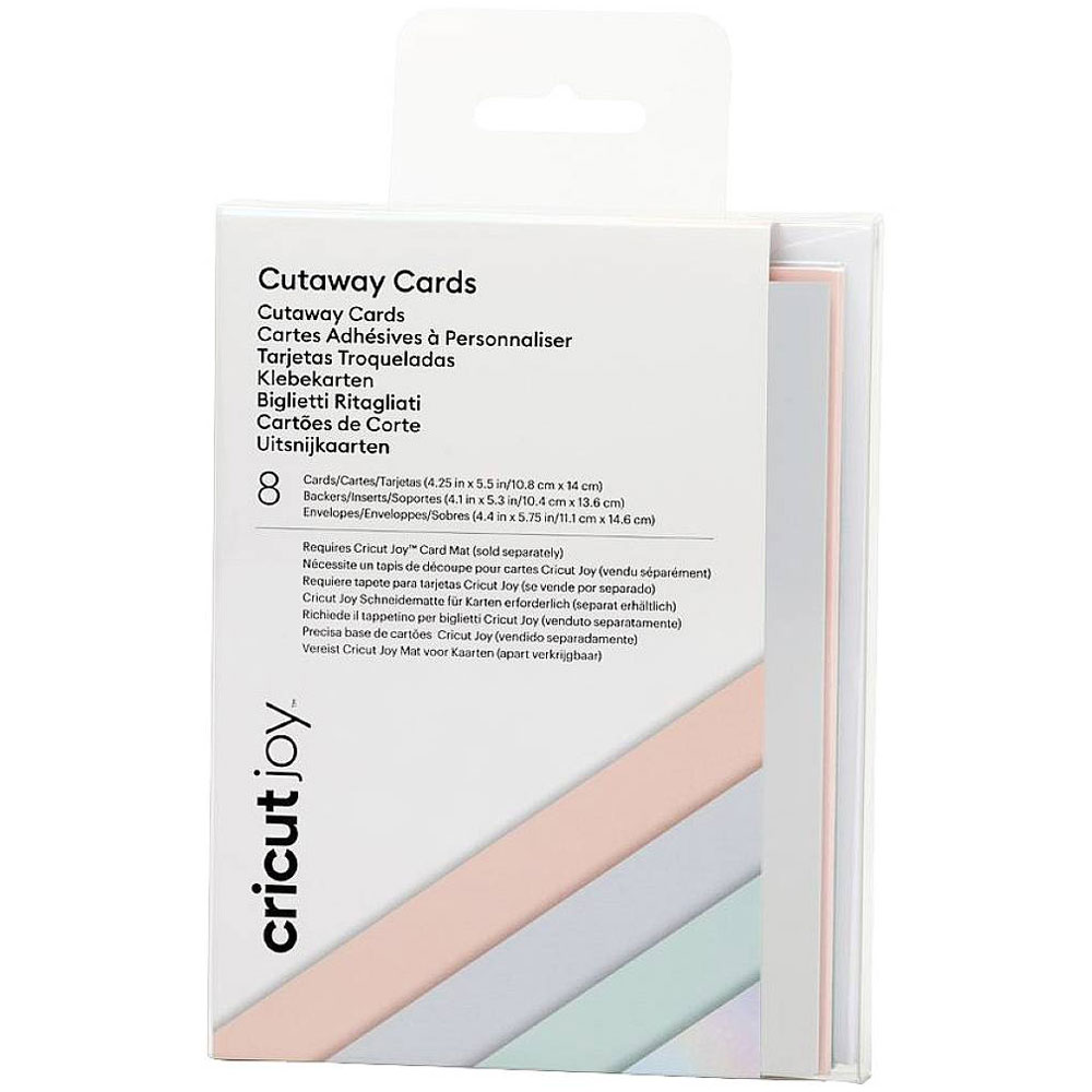 Cricut 2008856, Joy Cutaway Cards Set in pastel colours, including rose, light blue, and mint. Designed as a product offering, this set features pre-scored cards compatible with the Cricut Joy machine, allowing for precision cutting and easy personalisation. Each card set includes a coordinating peel-away half-sheet adhesive to simplify attachment and enhance durability without the need for glue. These cards are ideal for engineering applications that require custom-sized templates or prototypes, where efficient material use and precise dimensions are essential. As part number 2582415 helps identify, the cards offer a practical solution for creating pre-fabricated card interfaces, design mock-ups, and other precision crafting tasks.