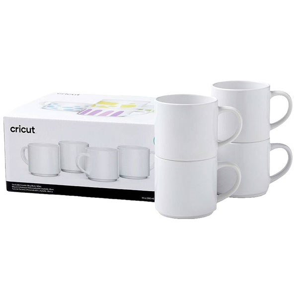 Cricut 2009392 is a set of four white mugs, each with a capacity of 300 millilitres, designed for crafting projects and personalised designs. This product, identified by the alternate description Cricut 2009392 Mug 300 ml White 4 pc(s) and global product identifier 00093573747908, is suitable for sublimation and heat transfer vinyl applications, frequently utilised in environments requiring custom drinkware production, such as personalised gift manufacturing and promotional materials assembly. Each mug in the set is engineered to withstand the high temperatures associated with sublimation printing processes, making them ideal for use in conjunction with Cricut's compatible heat press devices. The reliable structural integrity and standardised size ensure consistent results during thermal processing, allowing for reproducible output across multiple production cycles.