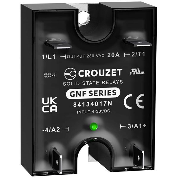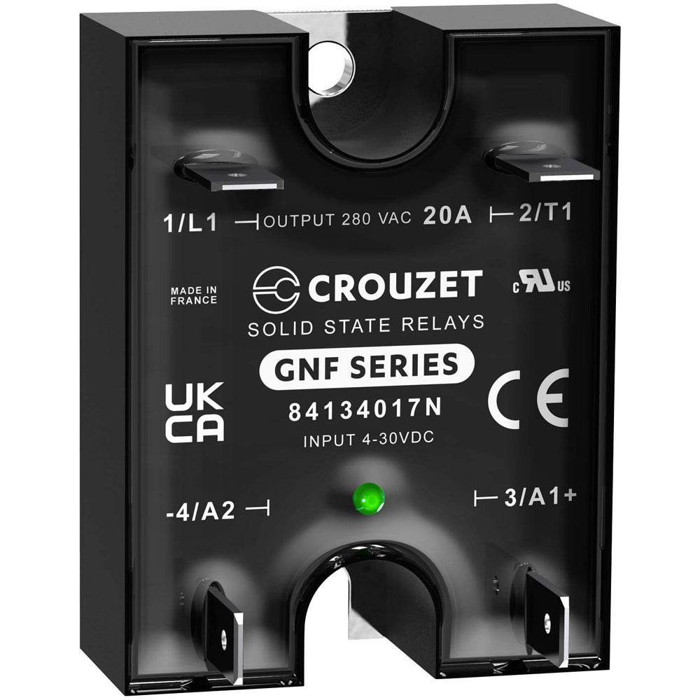 The Crouzet 84134017N is a solid state relay designed for zero-voltage switching with a maximum switching voltage of 280 V AC and a current rating of 25 A. Ideal for industrial applications, this electronic relay from Crouzet offers reliable semiconductor switching in environments requiring precise control. It is commonly used in automation, heating, and motor control systems for efficient and noiseless operation.