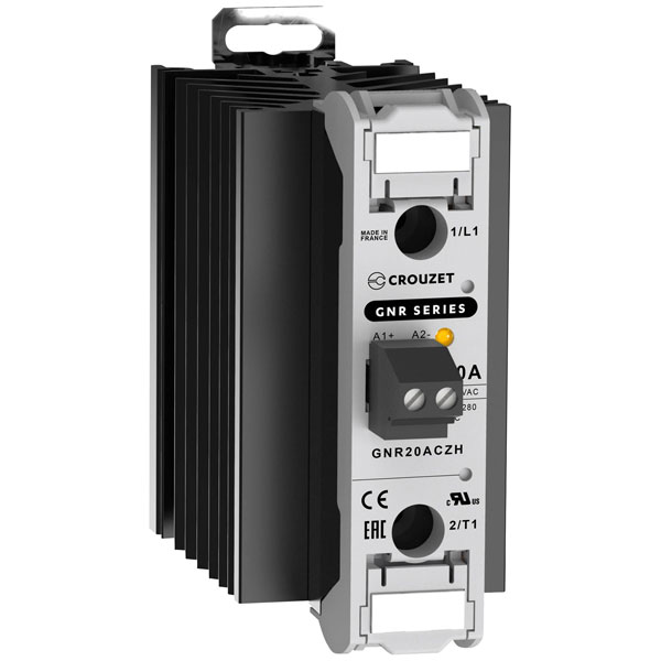 Crouzet's GNR45DCZP is a solid state relay with a maximum switching voltage of 500 V AC. It features zero crossing functionality and is rated at 45 A. Typical applications include industrial automation and electrical control systems.
