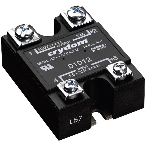 The Sensata/Crydom D1D12 is a solid-state relay designed for panel mounting.