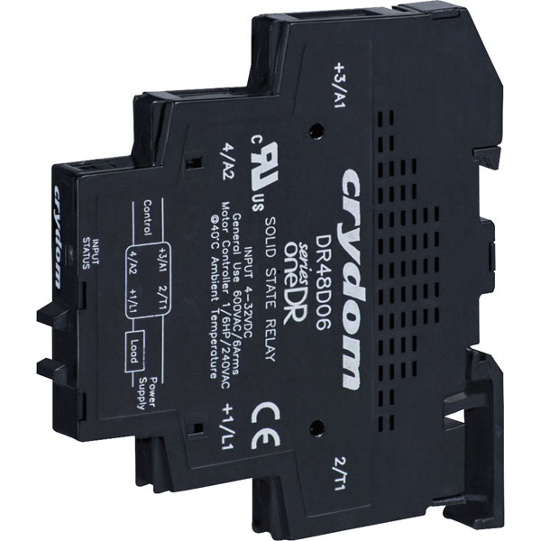 This 12A 1 to 100V DC solid state relay has a control voltage of 4 to 32V DC and is just 18mm wide.