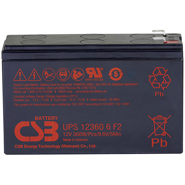 Brand: CSB Battery MPN: UPS123606F1F2 EAN-13: 4260030443123
