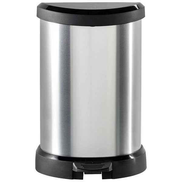 Curver 240568 Deco Bin 15L Silver/Black with Pedal and Inner Bucket