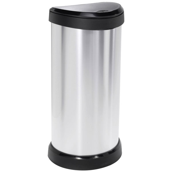 The Curver DECO Bin, model 240641, is a sleek 40-litre waste bin available in silver and black. Its dimensions are 335 x 685 x 285 mm, making it suitable for both home and office use. This rubbish bin features a stylish design that complements modern interiors.