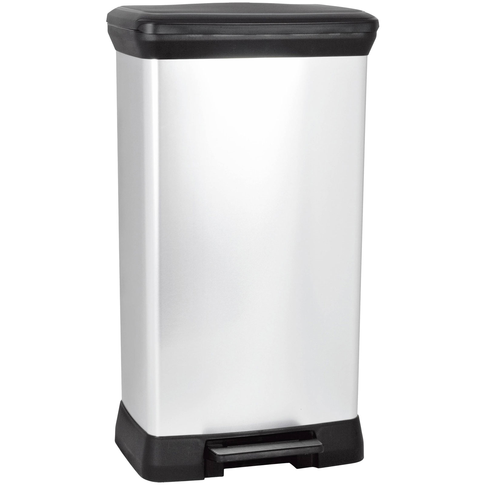 Curver 240643 Deco Bin Metallic 50L Silver/Black Soft-Close Pedal Open
