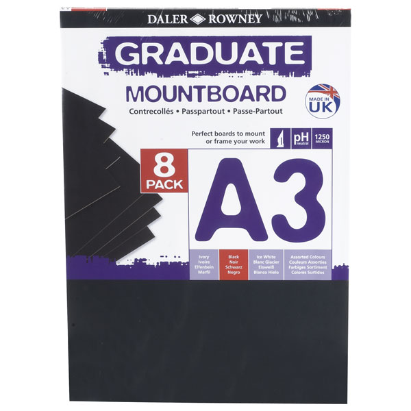 Daler Rowney A3 Black Graduate Mountboards ideal for all types of mounting and framing - artworks, photographs, project work, modelling and much more.