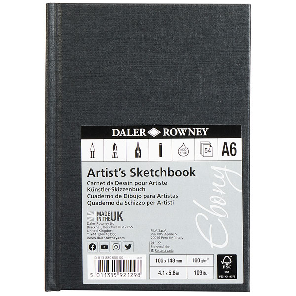 Made in the UK. The Daler-Rowney Ebony sketchbook range features a comprehensive selection of hardback sketchbooks in a variety of practical sizes and styles, perfect for students and professional artists alike.
