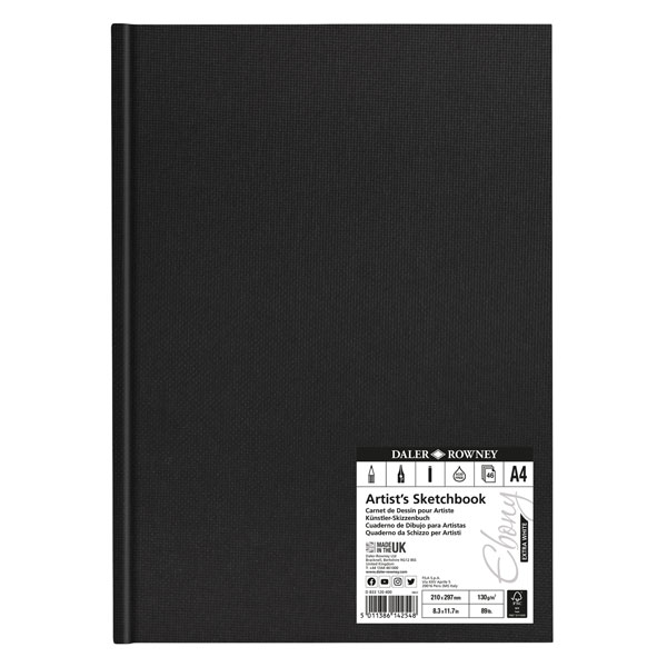 The Daler-Rowney Ebony sketchbook range features a comprehensive selection of hardback sketchbooks in a variety of practical sizes and styles, perfect for students and professional artists alike.