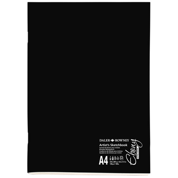Daler-Rowney D833320400 Ebony Extra White Stapled Sketchbook A4 Portrait 130g Daler-Rowney Ebony Extra White stapled sketchbook A4 portrait featuring 20 sheets of acid-free, crisp bright white 130gsm FSC® (FSC-C111372) certified cartridge paper.