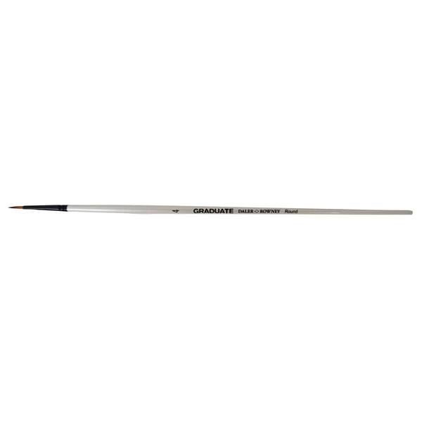Synthetic round long-handled paint brush from the Daler Rowney Graduate range designed to meet the needs of students and hobbyists alike. This brush can be used for touching up small areas, fine detailing and for applying well-thinned colour. A large size round will make it easier to lay a broad wash over a substantial area.