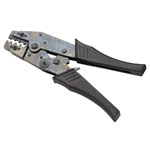A ratchet crimping tool suitable for crimps with circular cable entries.